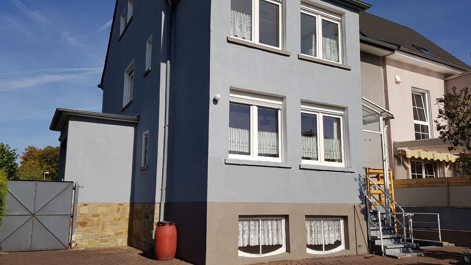 Auch außen wurde das Gebäude komplett erneuert. Die Fassade erhielt eine neue Dämmung sowie einen frischen Putz und Anstrich. So konnte nicht nur die Optik deutlich aufgewertet, sondern auch der energetische Standard spürbar verbessert werden.