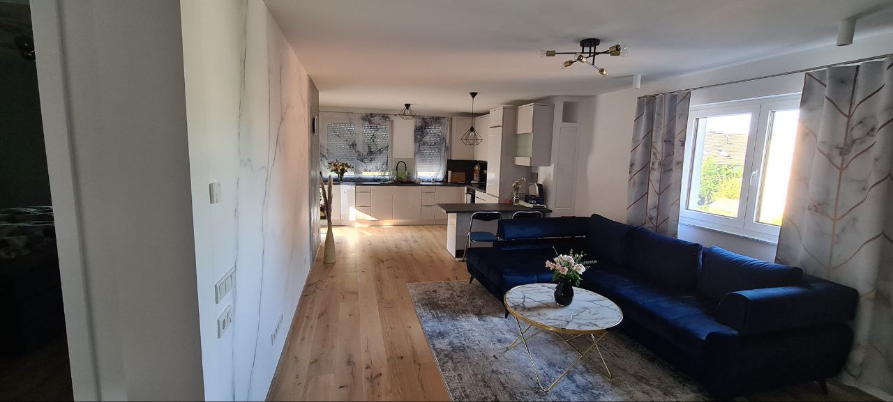 Bei diesem Projekt wurden Küche, Wohnbereich und Flur umfassend kernsaniert. Ziel war es, die einzelnen Bereiche optisch und funktional aufeinander abzustimmen und ein modernes, offenes Wohnkonzept zu schaffen.